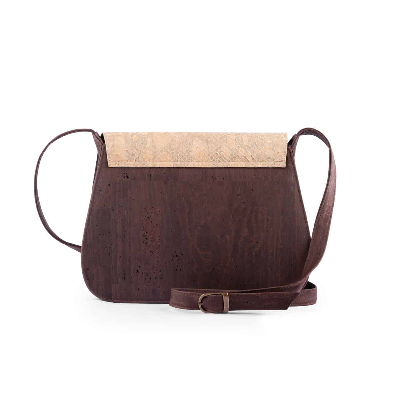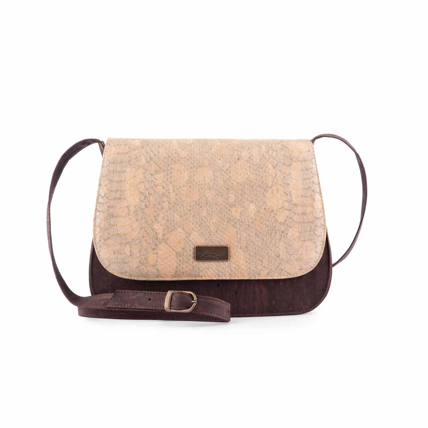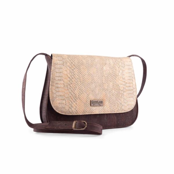 Kork Umhängetasche «Reptile» braun von CorkLane. Hergestellt aus blauem, kieselsteinfarbenem Alligator-Korkgewebe mit brauner Oberfläche.