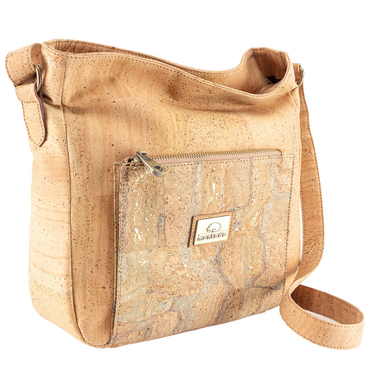 Kork-Umhängetasche «Yucatan» von Montado mit verstellbarem Trageriemen und Reissverschlussfächern.