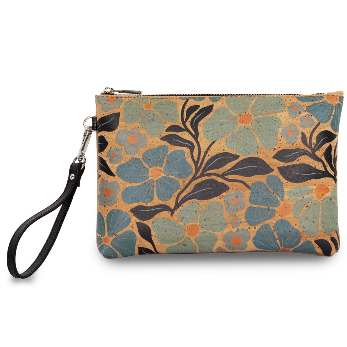 Korketui «Azul Flores» mit Reissverschluss, Schlüsselring, Gürtelhalterung sowie abnehmbarer Trageschlaufe.