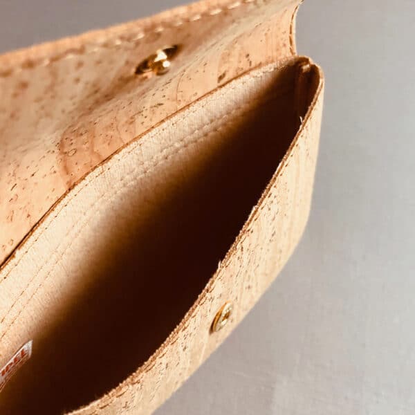 Kleines Korketui «Glitter» von Artipel mit einem Fach und Druckknopf. Mit stylischem Glitzereffekt auf der Aussenseite. Kann auch als einfacher Geldbeutel verwendet werden.