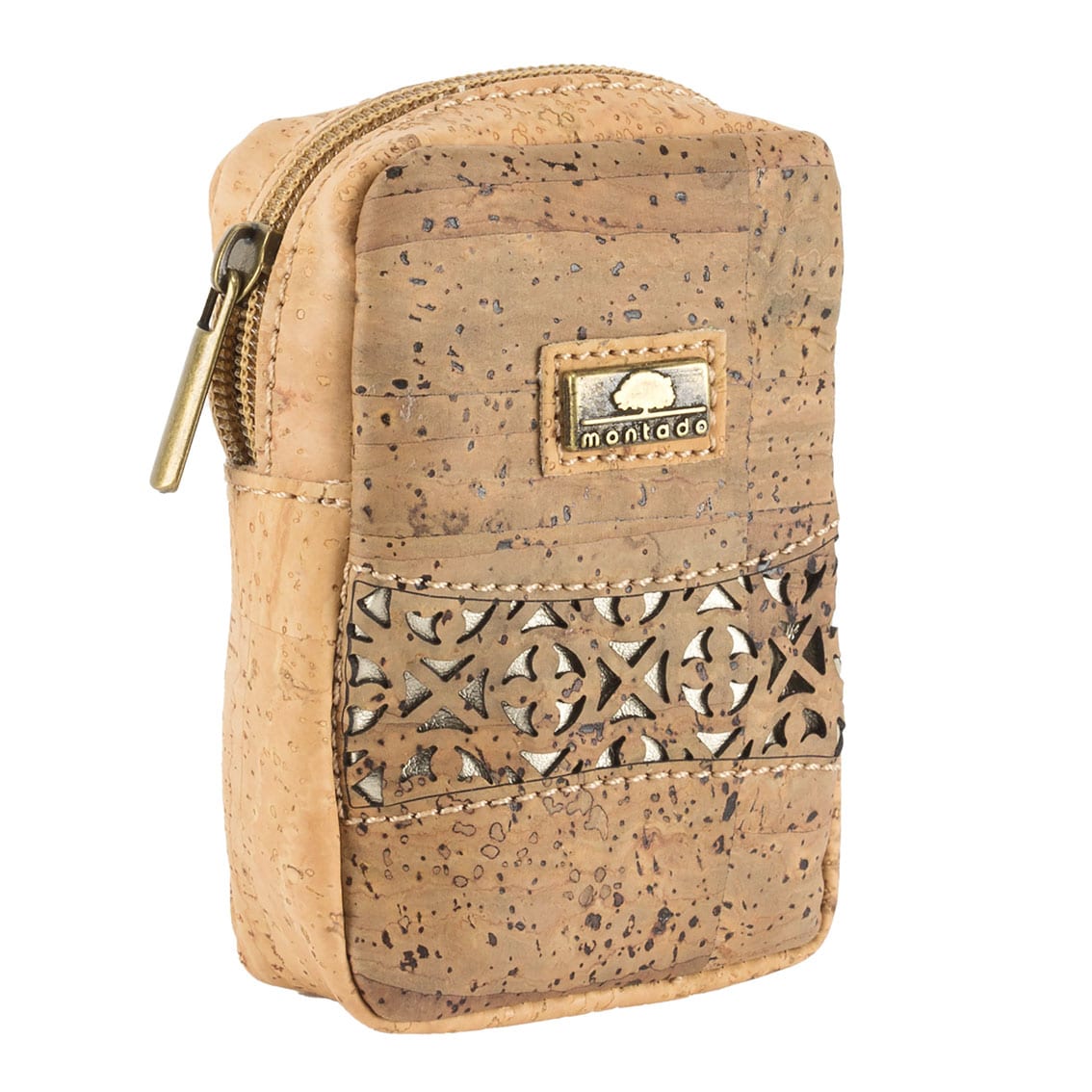 Praktisches Korketui «Laser Flor» von Montado mit goldenen Einschlüssen sowie Reissverschlüssen.