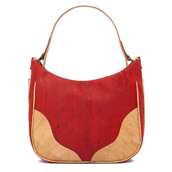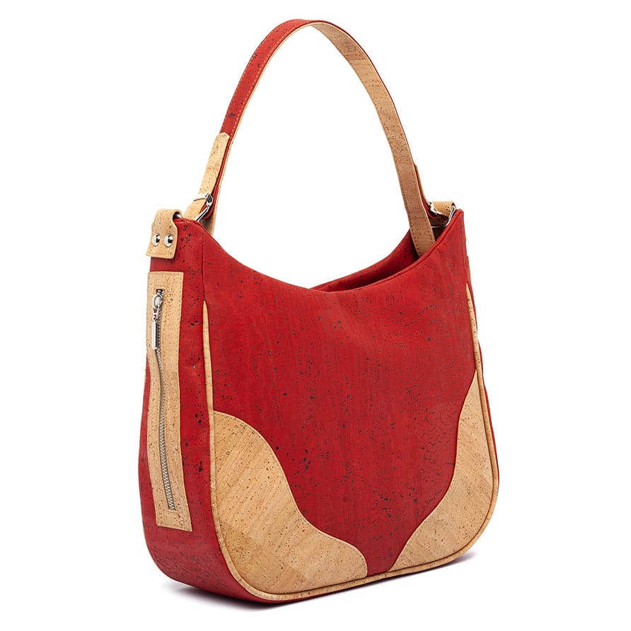 Korktasche «Albufeira» rot von Artelusa. Nachhaltige Handtasche mit weissen Ecken. Kann auch als Umhängetasche verwendet werden.