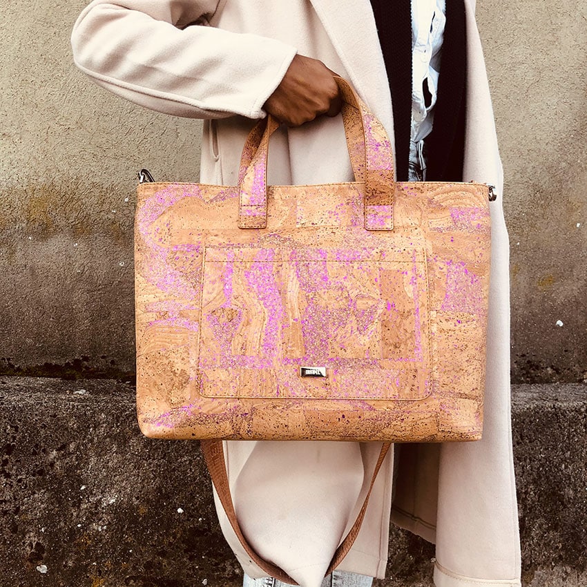 Korktasche «Brilho» rosa von Artipel. Kann als Handtasche sowie Umhängetasche verwendet werden. Mit rosa Glitzereffekt.