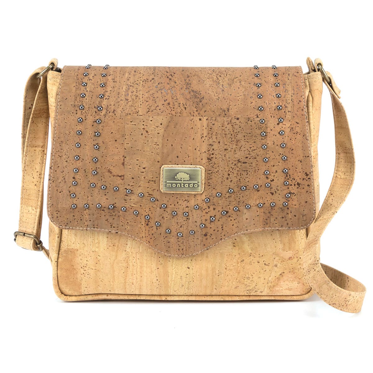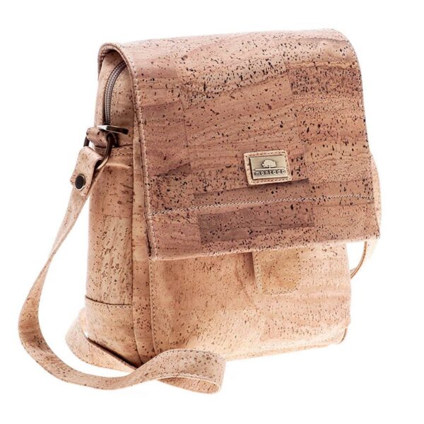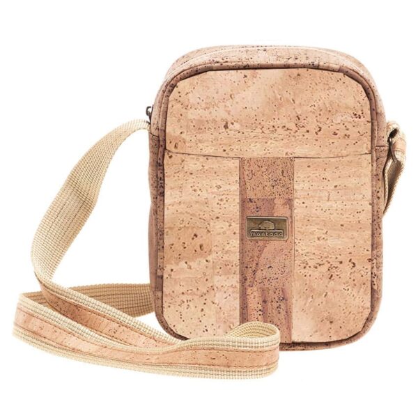 Korktasche «Cross Stripe» natur von Montado. Handliche Umhängetasche in praktischer Grösse mit Einschub- sowie Reissverschlussfächern.