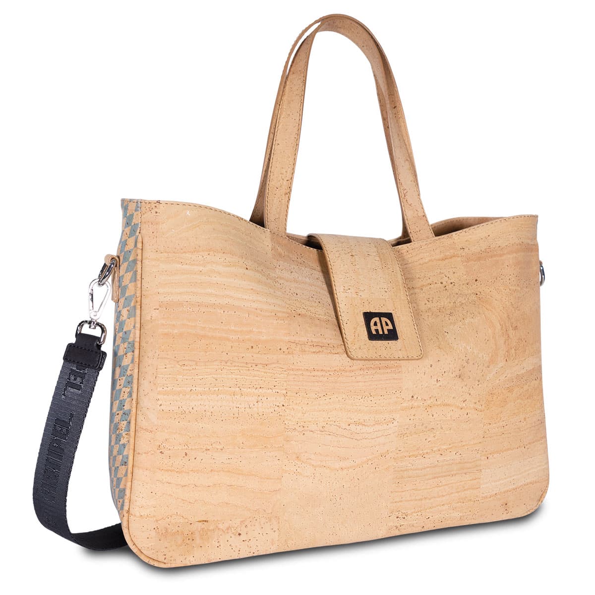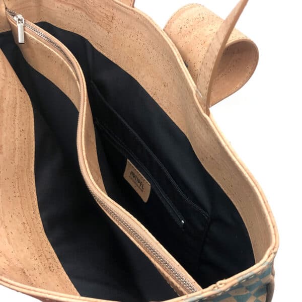 Korktasche «Laborie» von Artipel mit hellblauen Elementen auf den Aussenseiten.