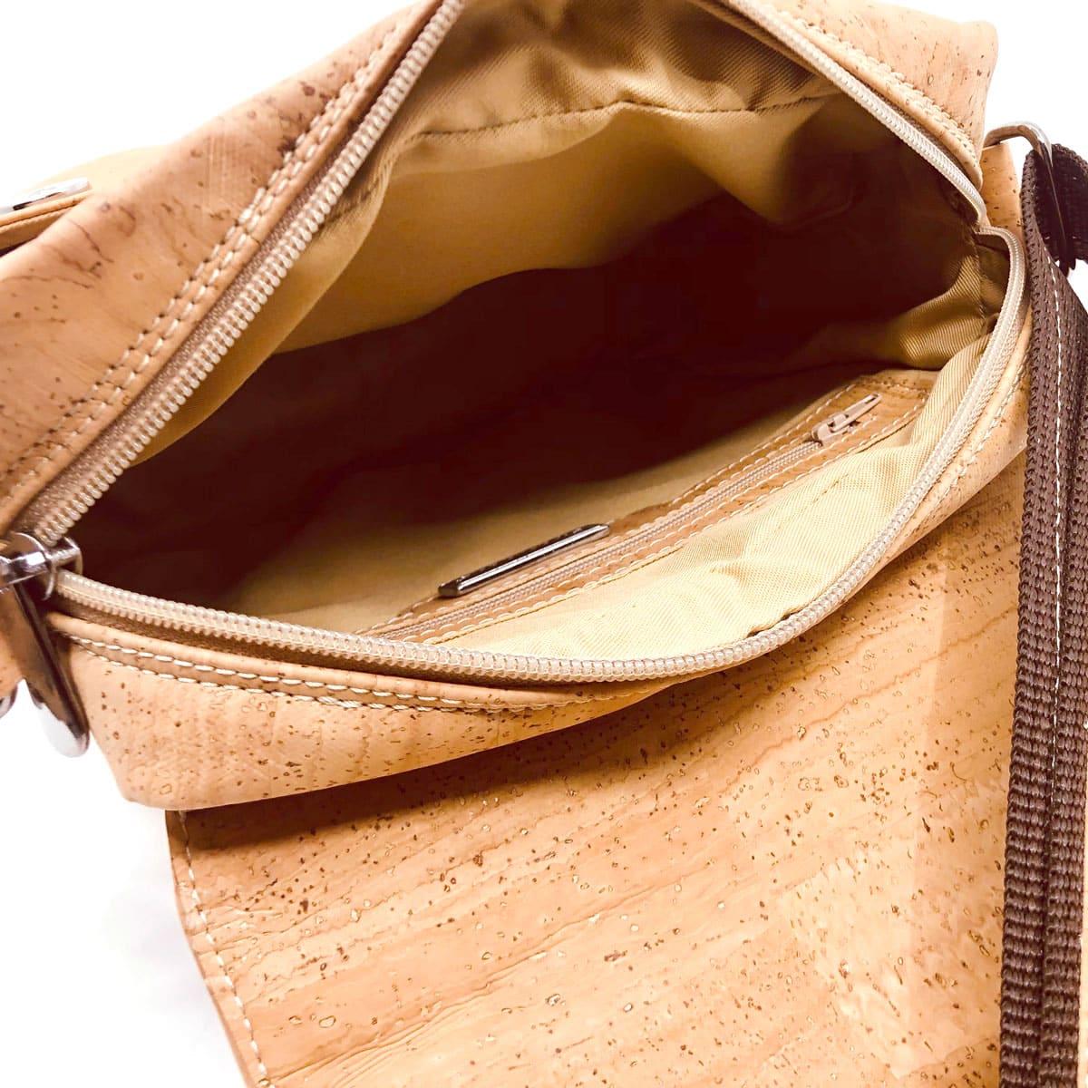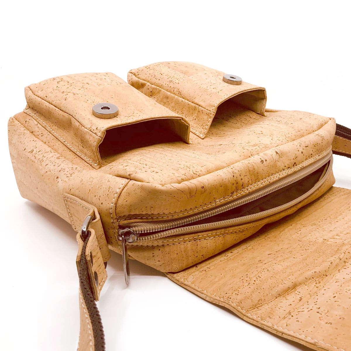 Korktasche «Negombo» natur von Marla Pais mit Schutzklappe sowie verstellbarem Trageriemen.