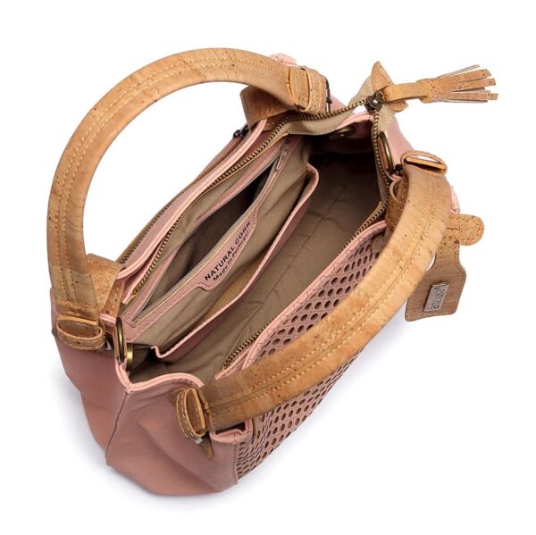 Korktasche «Ponto» rosa von Artelusa. Rosa eingefärbter Kork mit Lasercut. Kann auch als Schulter- sowie Umhängetasche verwendet werden.