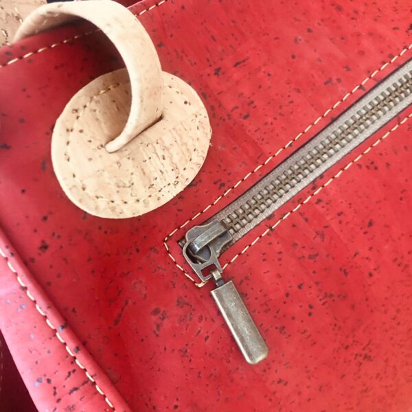 Korktasche «Ponto» rot von Artelusa. Rot eingefärbter Kork mit Lasercut. Kann auch als Schultertasche verwendet werden. Die Grösse kann mit den seitlichen Knöpfen angepasst werden.