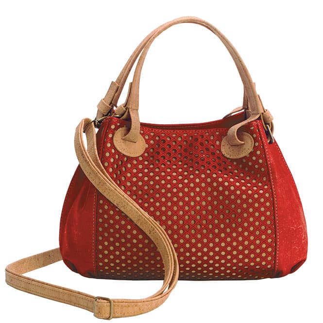Korktasche «Ponto» rot von Artelusa. Rot eingefärbter Kork mit Lasercut. Kann auch als Schultertasche verwendet werden.