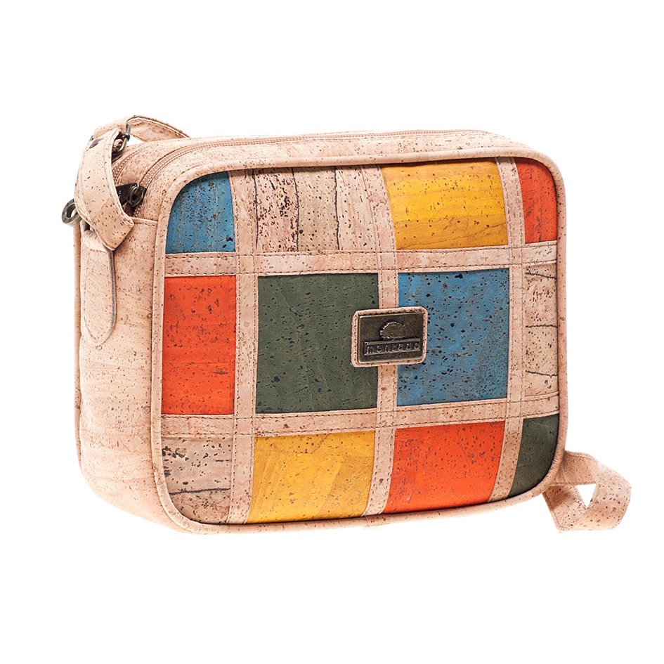 Korktasche «Rectangular» mit Patchworkmuster auf der Vorderseite.