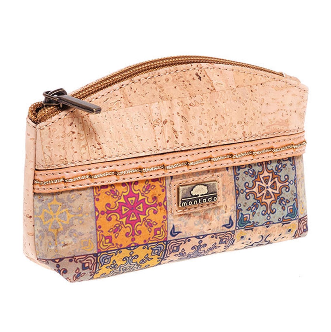 Dieses Kosmetiketui aus Korkleder «Mosaico Arco» von Montado kombiniert braune Farbtöne mit Mosaik-Mustern.
