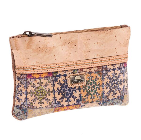 Dieses Kosmetiketui aus Korkstoff «Mosaico Natur» von Montado kombiniert natürliche Farbtöne mit Mosaik-Mustern.
