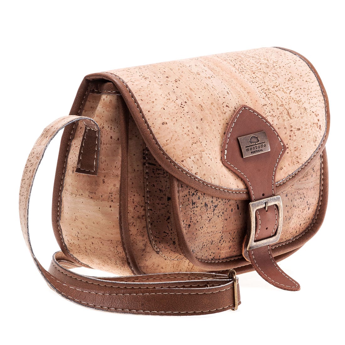 Nachhaltige Schultertasche aus Kork «La Paz» von Montado mit Schutzklappe sowie Reissverschluss.