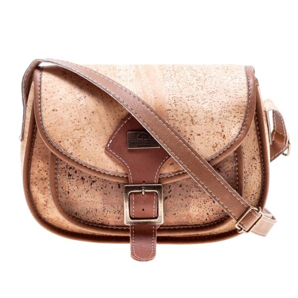 Nachhaltige Schultertasche aus Kork «La Paz» mit Schutzklappe sowie Reissverschluss.