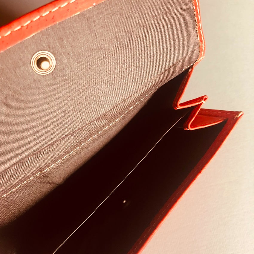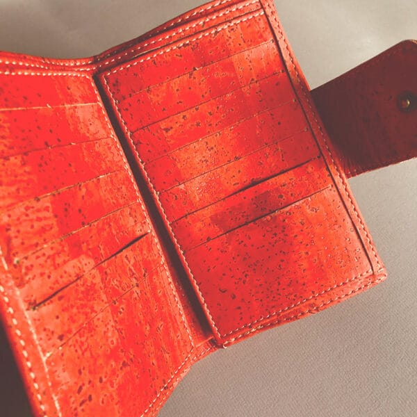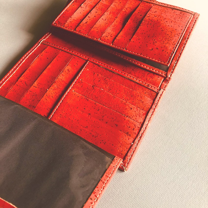 Portemonnaie aus Kork «Grapefruit» von Artelusa. Transportiere dein Geld auf eine natürliche Weise! Hergestellt aus rot gefärbtem, weichem Korkleder.