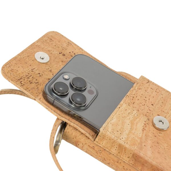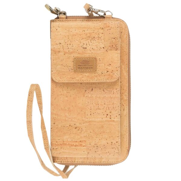 2 in 1: Portemonnaie mit Handy-Fach aus Kork braun von Montado. Mit verstellbarem, abnehmbarem Trageriemen.