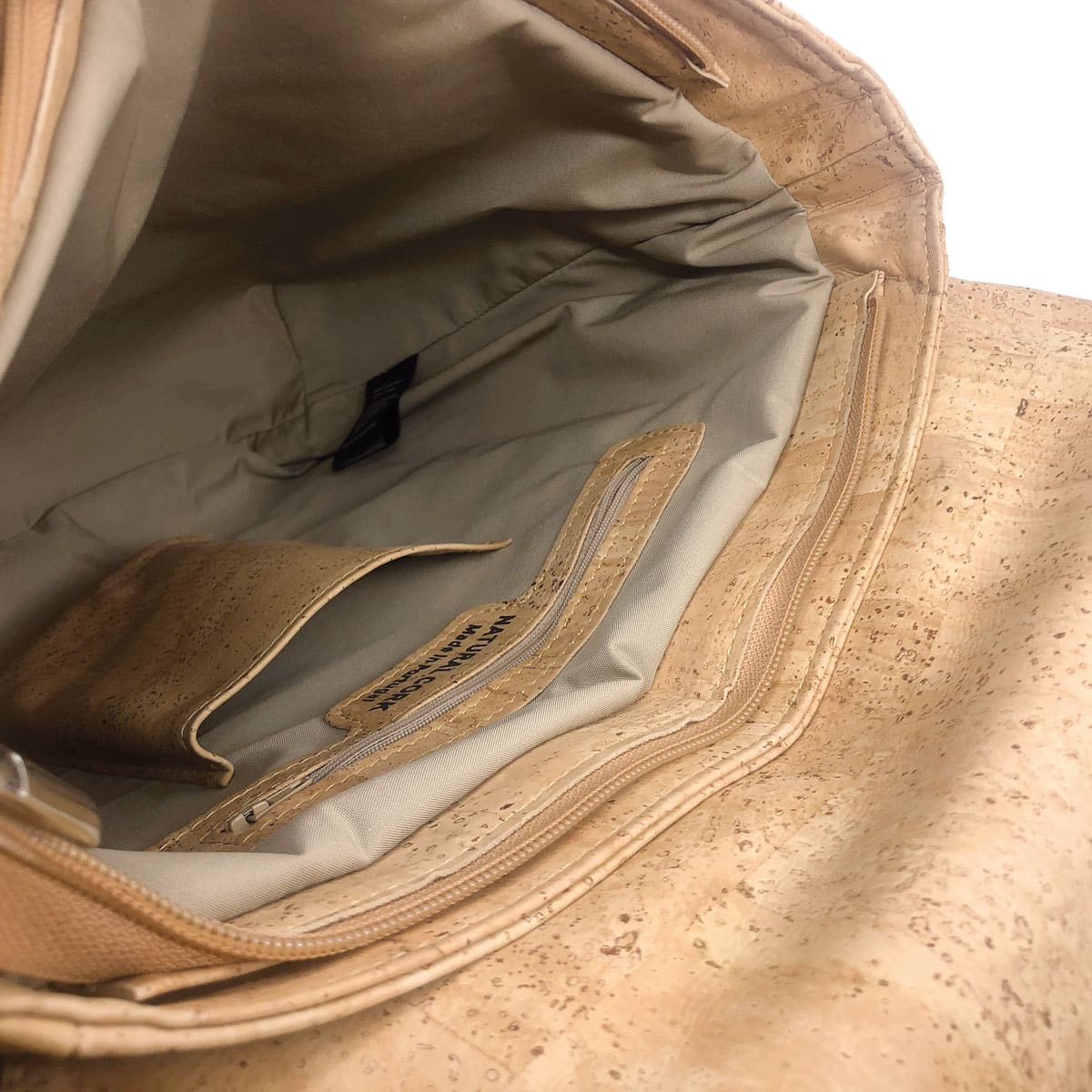 Der Rucksack aus Kork «Chan» hat breite Trageriemen und besticht zudem mit seinem stylischen Design.