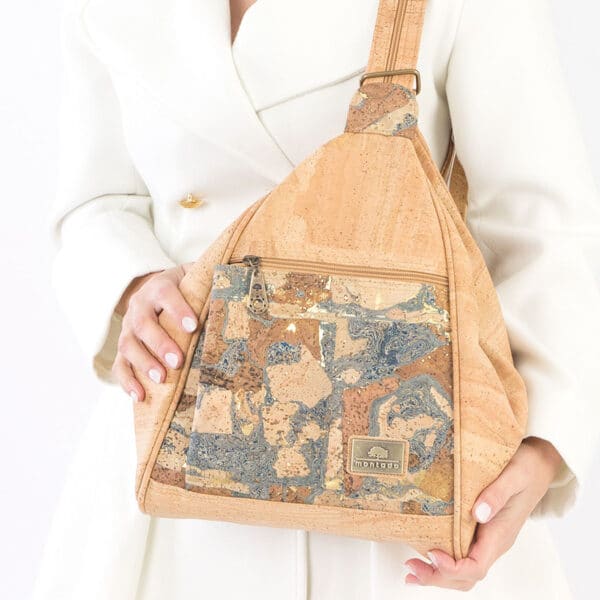 Der Rucksack aus Kork «Tayrona» Raiz ist vielseitig! Er kann nämlich auch als Umhängetasche verwendet werden (siehe Fotos).