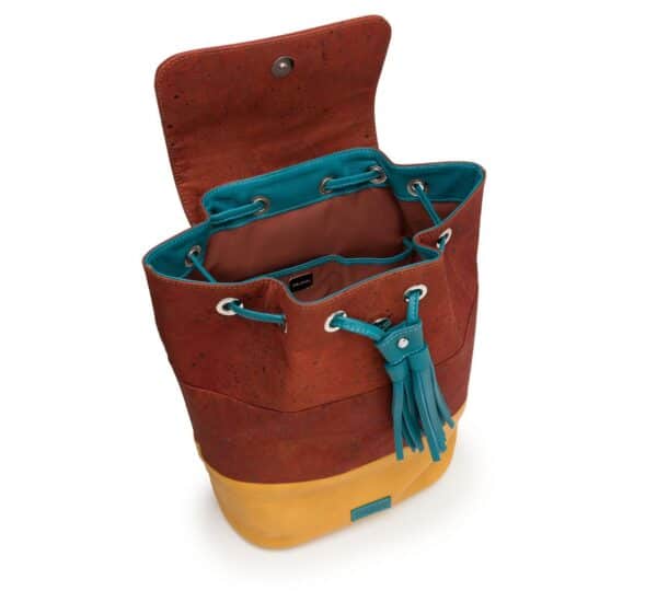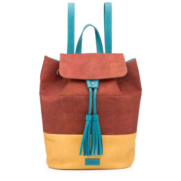 Rucksack «Chilli» aus Korkleder von Pelcor. Urbaner Rucksack, der Kork und Leder in zwei kontrastierenden Farben kombiniert. Cooles, trendiges Design. Mit einem Tragegriff oben, einer Klappe sowie Magnet-Verschluss. Die Farbkombination verleiht ihm einen zeitgemässen Look. 1 Aussentasche mit Reissverschluss sowie eine Innentasche.