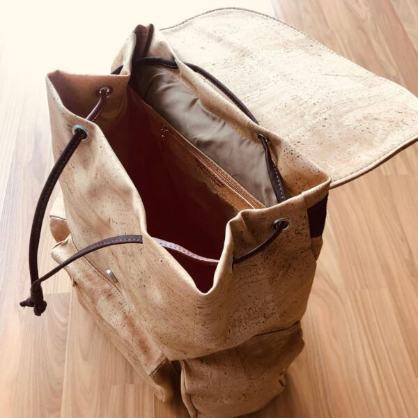 Rucksack «Natural» aus Kork von Artelusa. Kork Rucksack mit viel Platz in den 3 Aussenfächern sowie dem grossen Hauptfach.