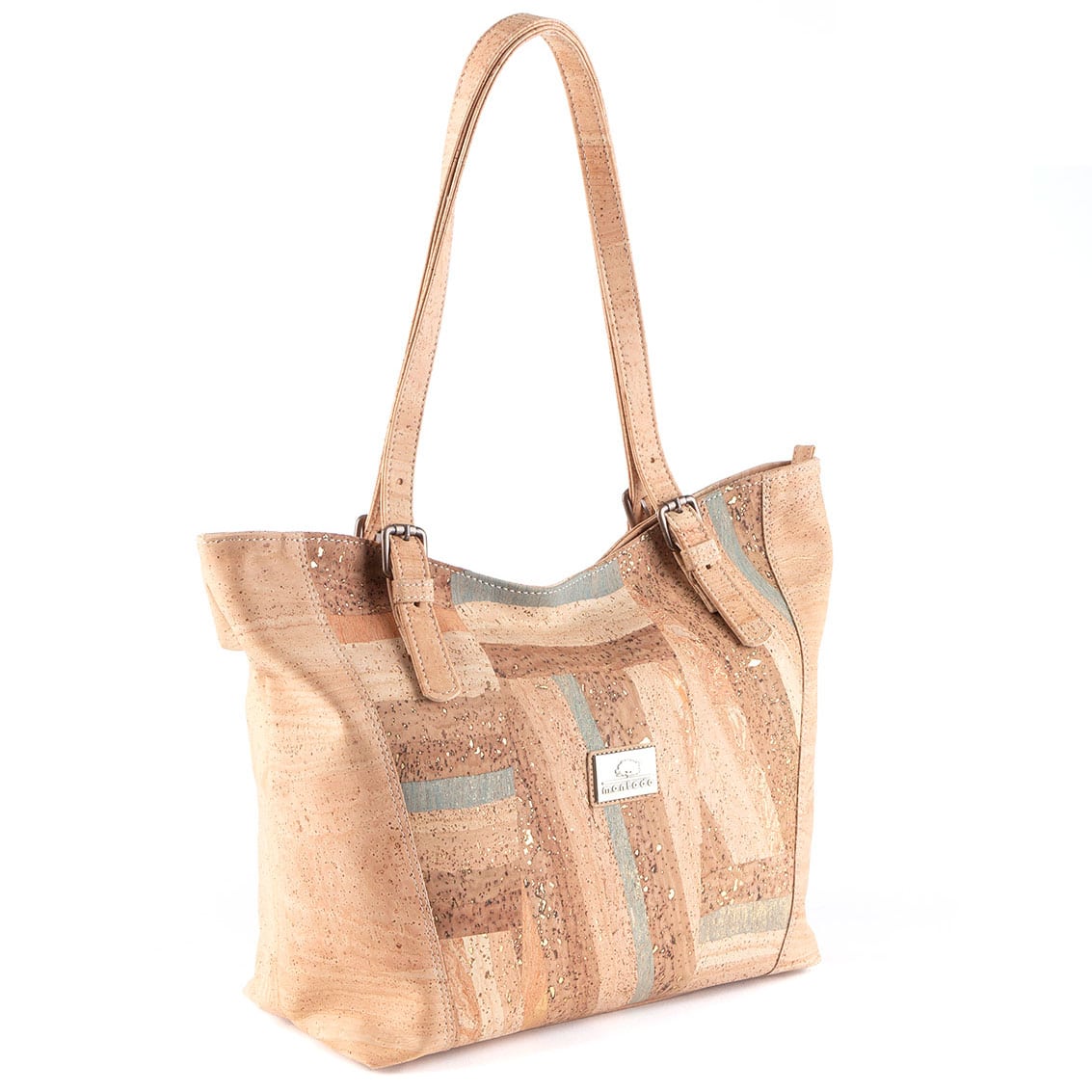 Schultertasche aus Kork «Parquet» von Montado. Natürliche Korktasche mit Muster sowie goldenen Einschlüssen auf der Frontseite.