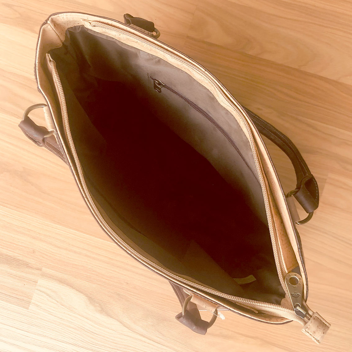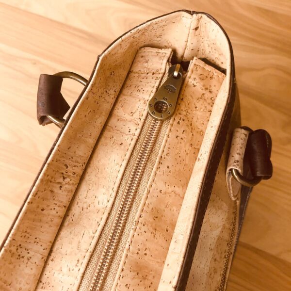 Der Kork, den wir zur Herstellung unserer Taschen und anderer Produkte verwenden, wird alle neun Jahre aus Korkeichen gewonnen, ohne die Gesundheit des Baumes zu schädigen. Tatsächlich profitiert der Baum von diesem Prozess. Jede Korkeiche hat eine Geschichte, alle Korkplatten weisen Variationen in Muster, Farbe sowie Textur auf. Jeder Modeartikel aus Kork hat auch eine Geschichte. Sie sind alle unterschiedlich. Kork ist ein hochwertiges Material. Mehrere haben versucht, ihn durch industrielle sowie technologische Verfahren nachzubilden. Alle sind erbärmlich gescheitert.