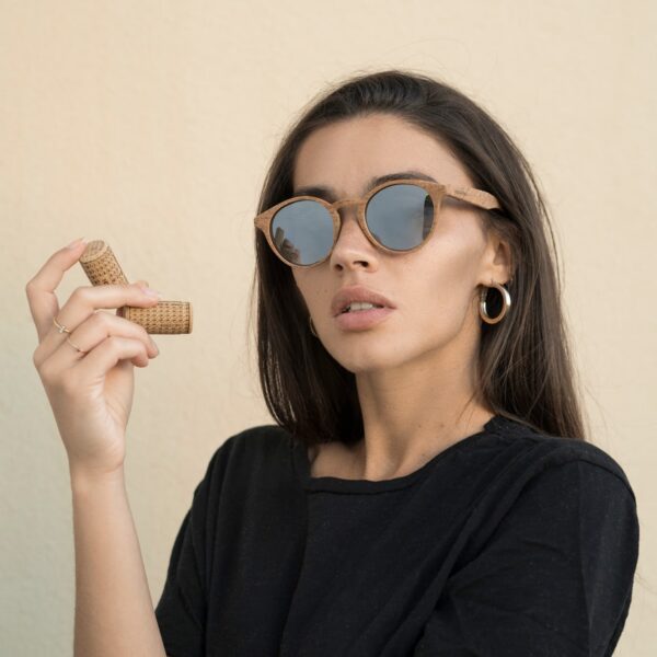 Sonnenbrille Laguna aus Kork von Parafina. Sonnenbrille aus recycelten Korkfasern, kombiniert mit recyceltem HDPE-Kunststoff.