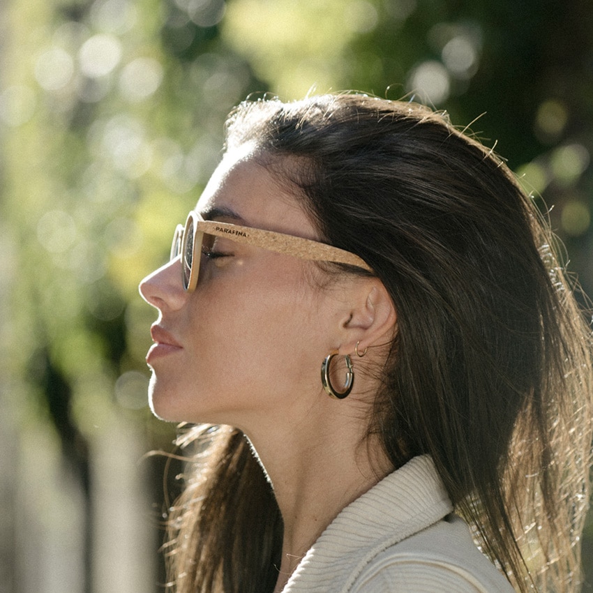 Sonnenbrille Laguna Dark aus Kork von Parafina. Sonnenbrille aus recycelten Korkfasern, kombiniert mit recyceltem HDPE-Kunststoff.