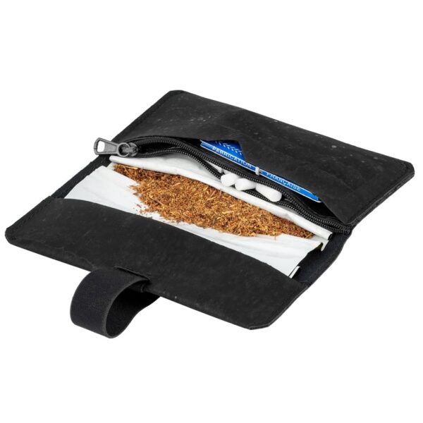 Tabaketui aus Kork «Lisboa» schwarz von Simaru. Mit praktischem Gummiband für ein schnelles Verschliessen.