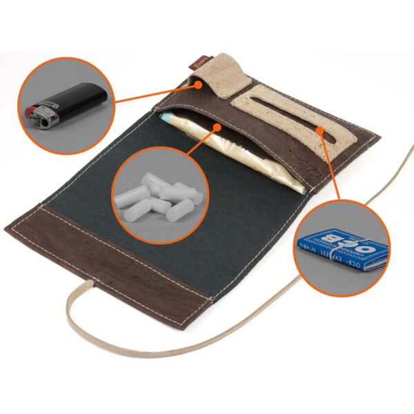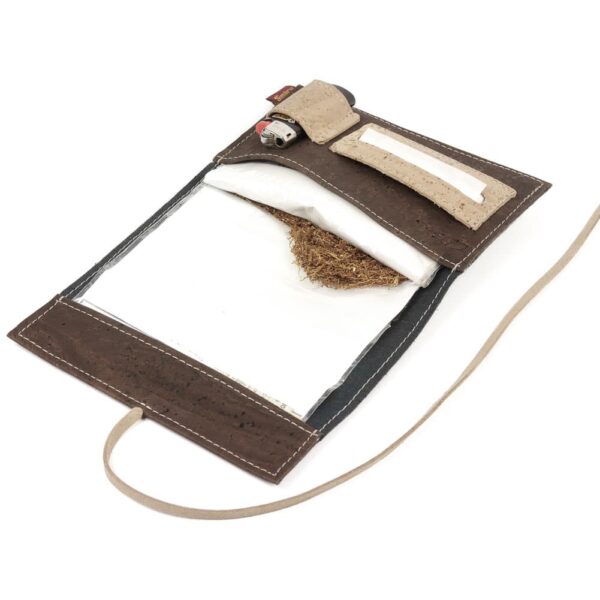 Tabaktasche «Porto» braun aus Kork von Simaru. In dieser Korktasche kannst du Tabak, Blättchen, Filter sowie Feuerzeug ideal verstauen.