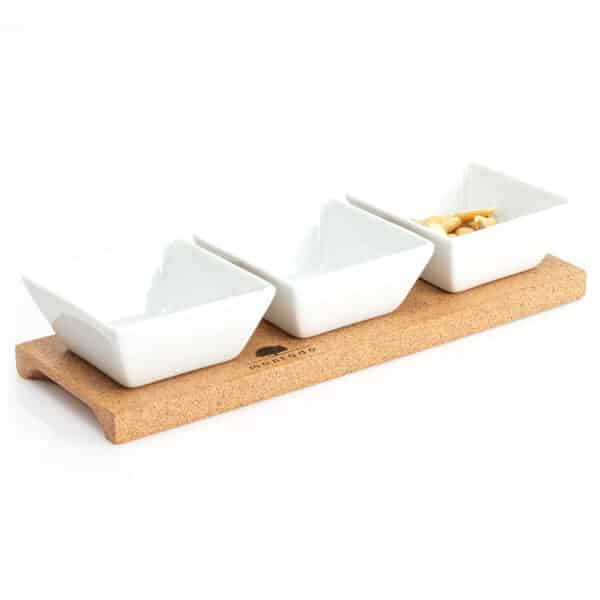 Tapas Schalen aus Keramik mit Untersetzer aus Kork von Montado. Bringt Stil auf deinen Esstisch!