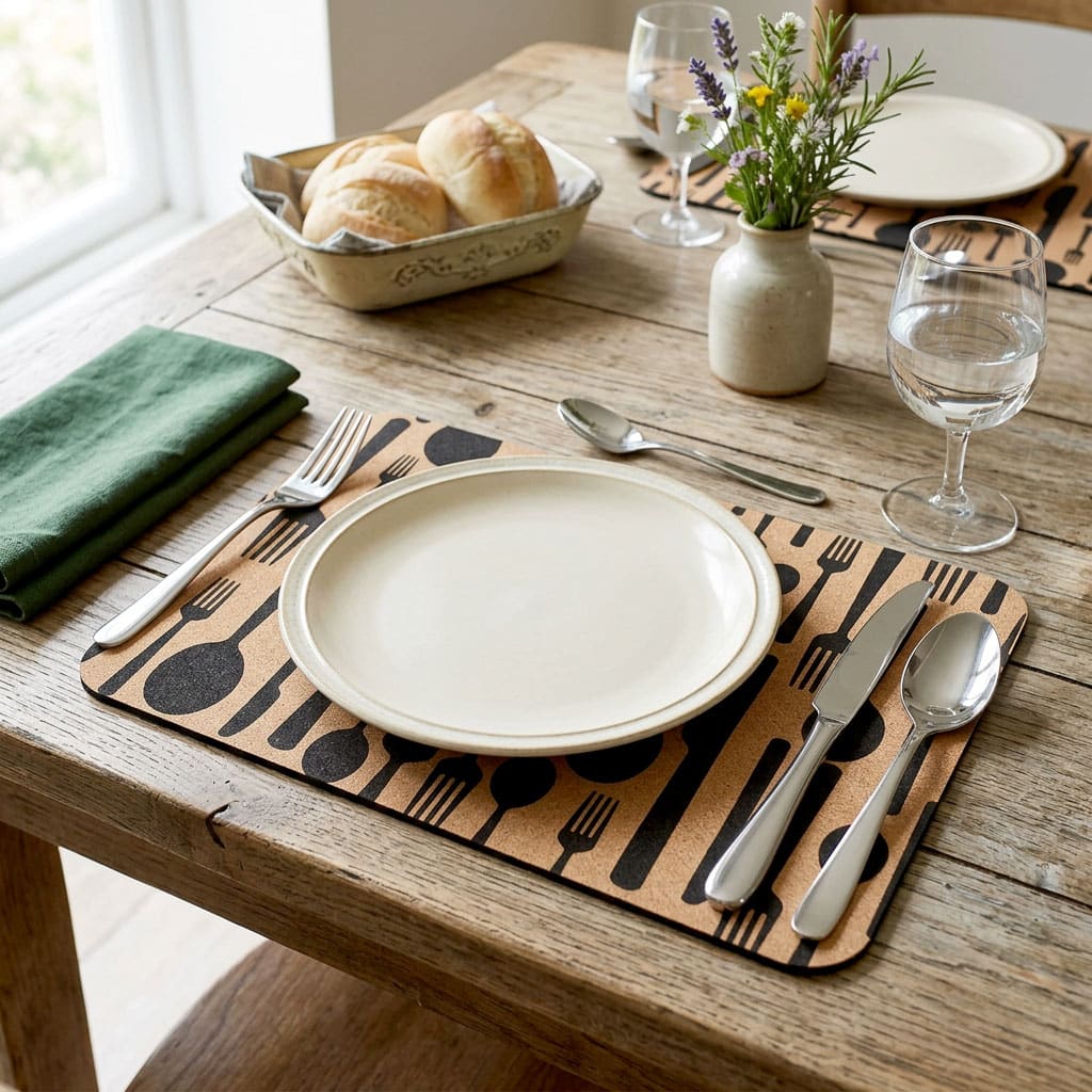 Die Tischsets aus Kork «Cutlery» (4er-Set) sind wasserabweisend, hitzebeständig sowie einfach zu reinigen. Die perfekte Unterlage auf deinem Esstisch!