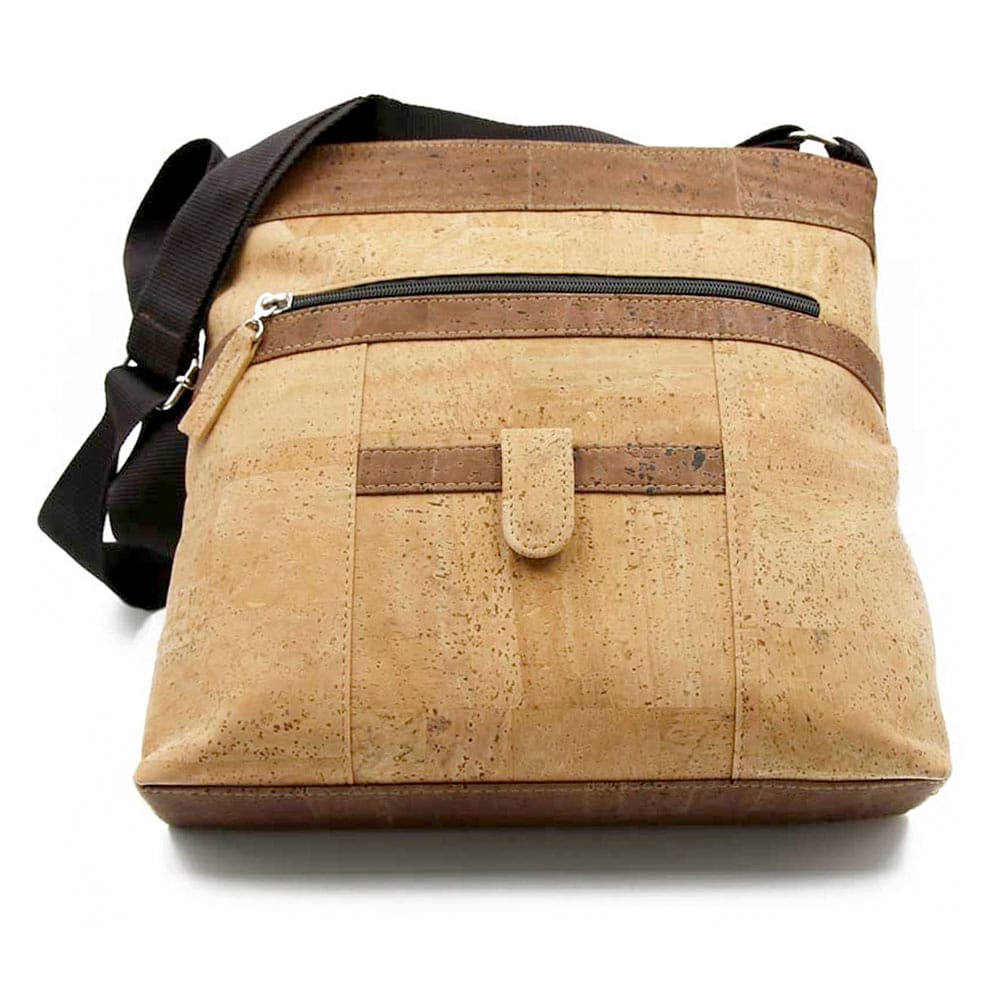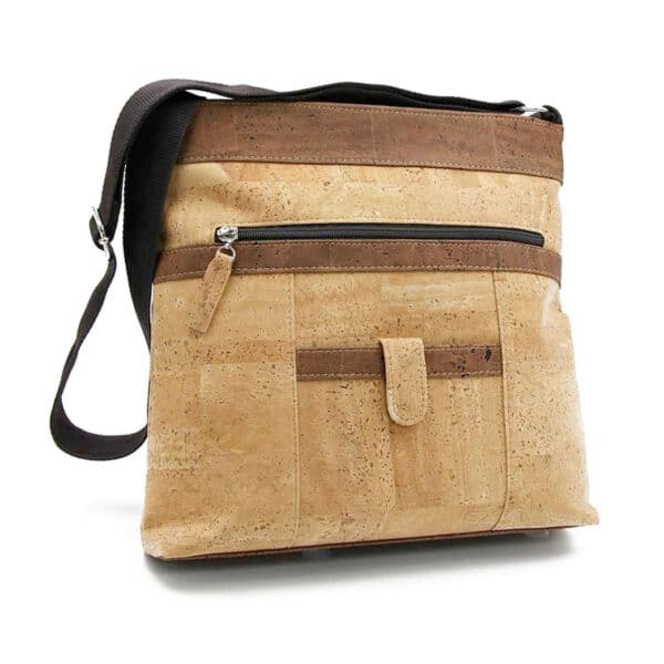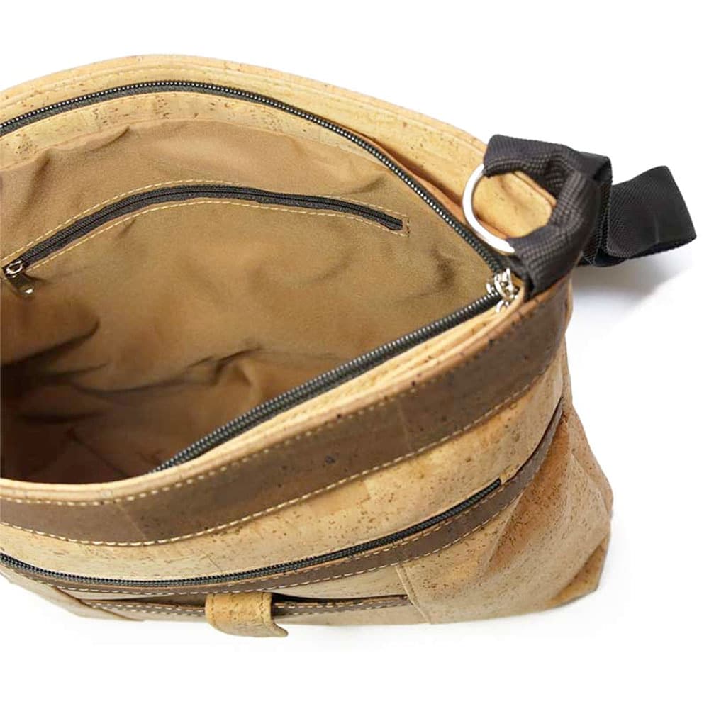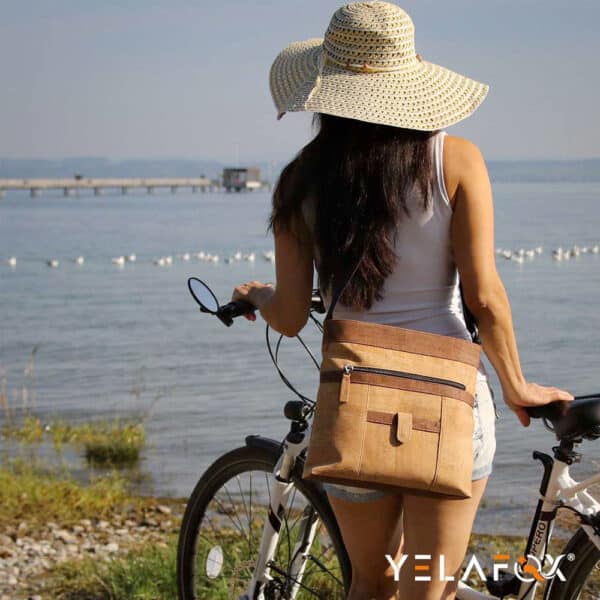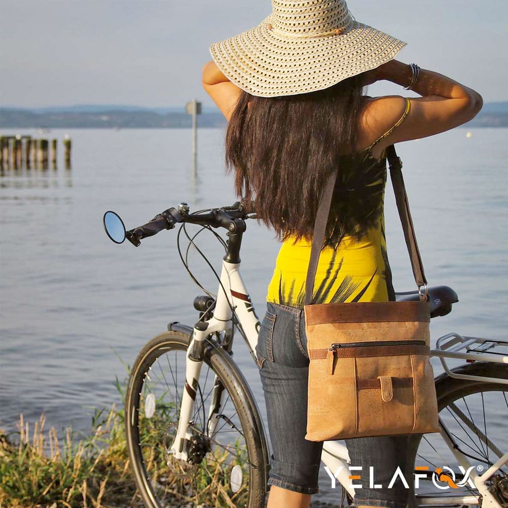 Die Umhängetasche aus Kork «Paloma» von Yelafox sticht mit ihren Kontrasten heraus. Für die Aussenhülle wurden unterschiedlich gefärbte Korkteile verwendet.