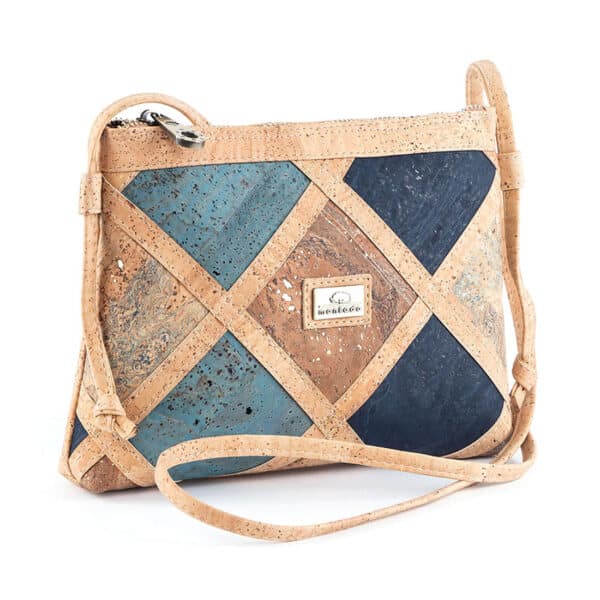 Umhängetasche «Losango Azul 2» aus Kork von Montado mit verstellbarem Trageriemen.