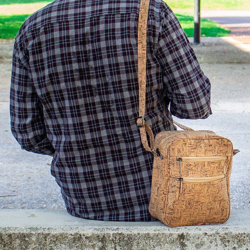 Umhängetasche «Pattern» aus Kork von MB Cork. Coole Schultertasche mit 3 Reissverschlussfächern sowie verstellbarem Trageriemen.