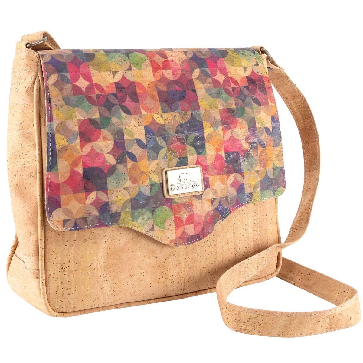 Kork Umhängetasche «Rainbow Flap» von Montado mit verstellbarem Trageriemen und Schutzklappe.