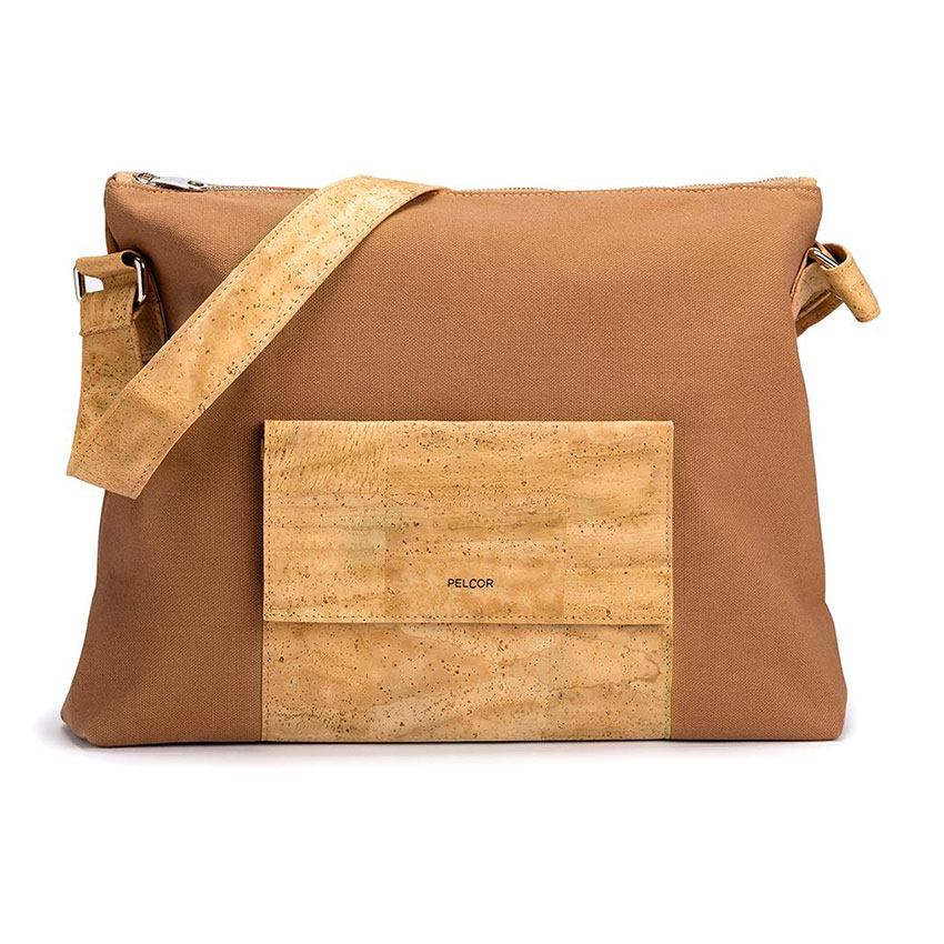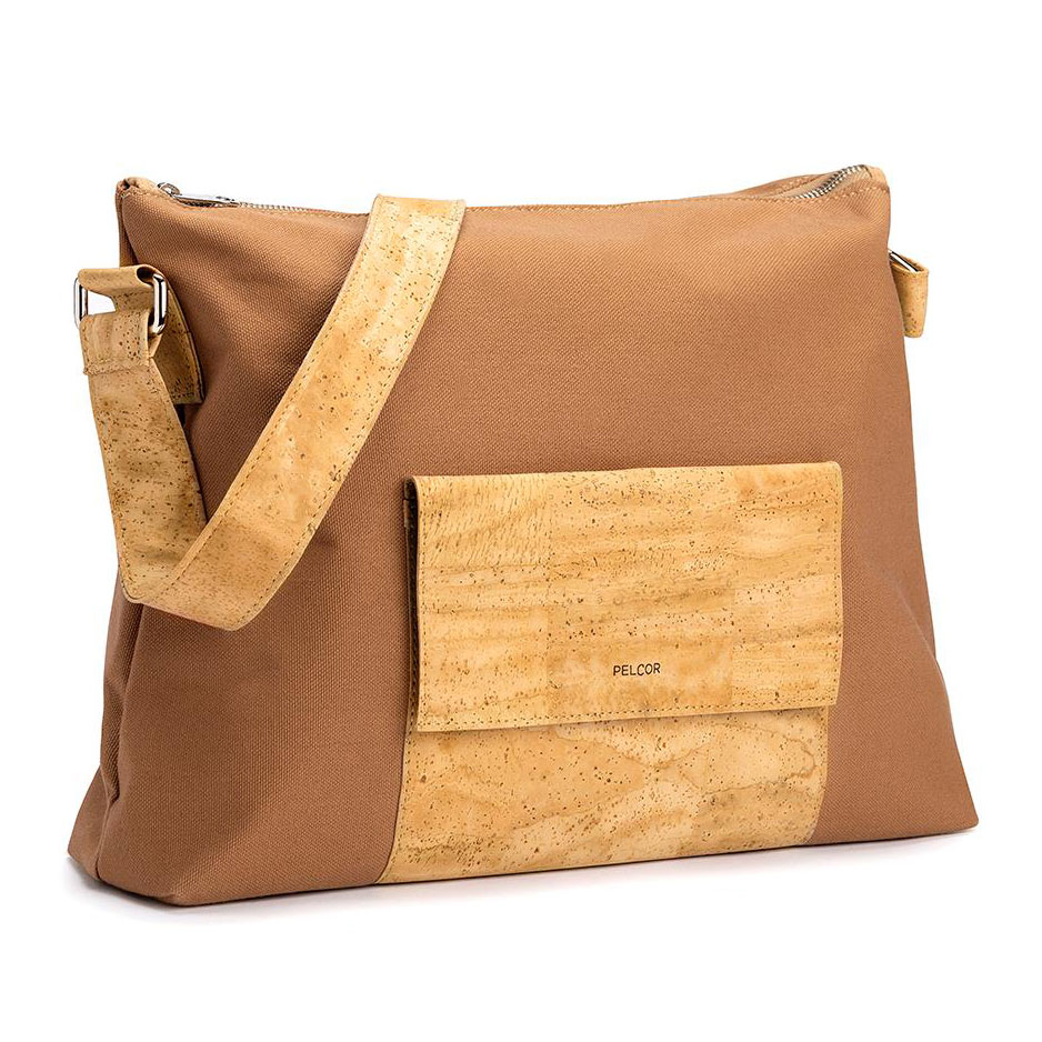 Umhängetasche / Reisetasche «Cinnamon» aus Kork und Stoff von Pelcor. Schöne natürliche Brauntöne.