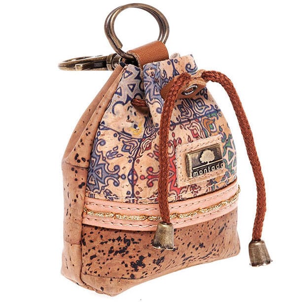Umweltfreundliches Schlüsseletui aus Kork «Mosaico S» von Montado mit Schlüsselring sowie Karabinerhaken.