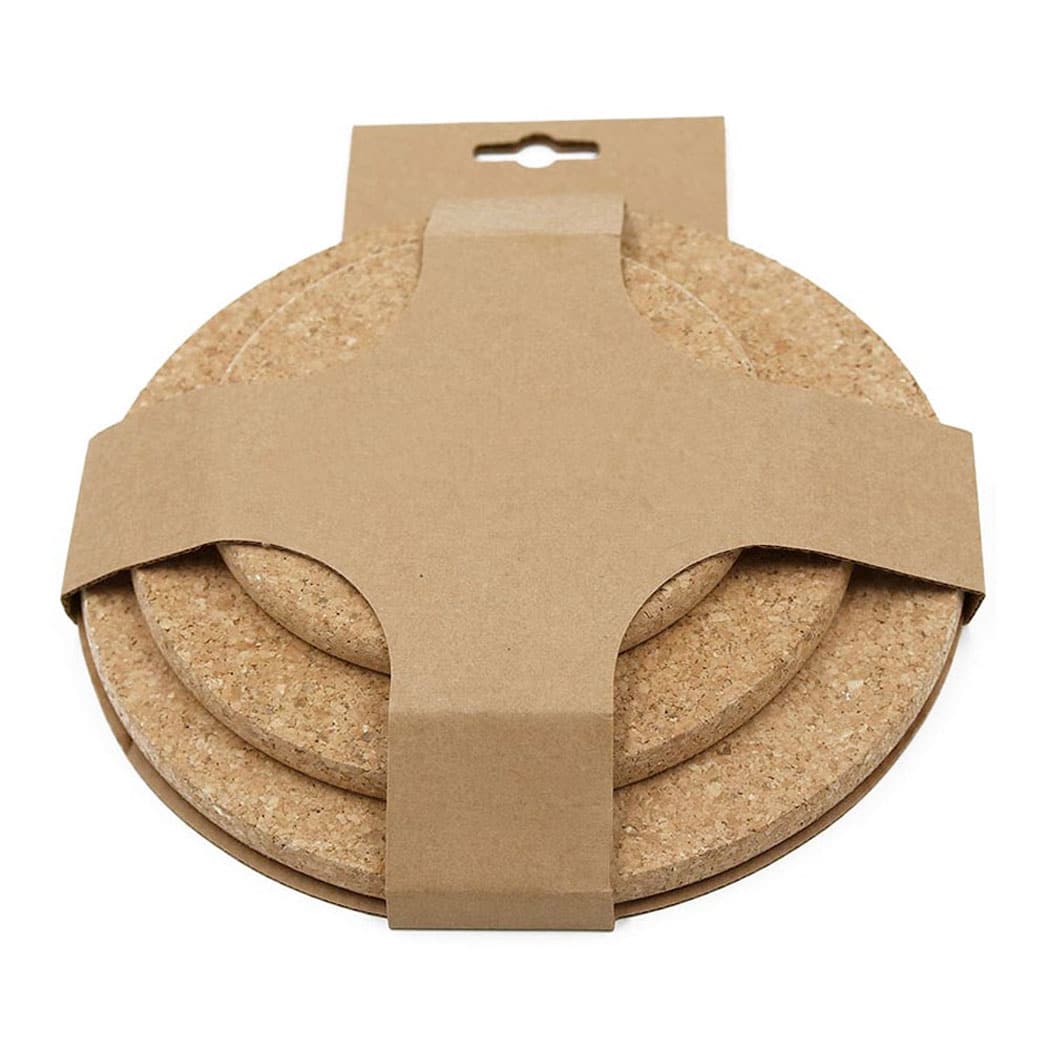 Das Untersetzer-Set aus Kork (rund) besteht aus hitzebeständigem Naturkork. Es enthält 3 verschiedene Grössen für Pfannen, Töpfe sowie Auflaufformen, die direkt vom Herd oder aus dem Backofen kommen.