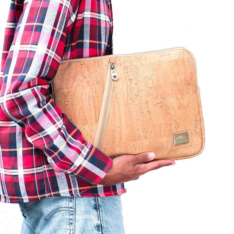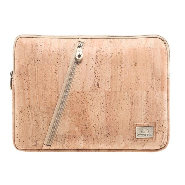 Vegane Computerhülle aus Kork «Basic» von Montado. Gepolsterte Laptophülle mit zusätzlichem Reissverschlussfach auf der Aussenseite.