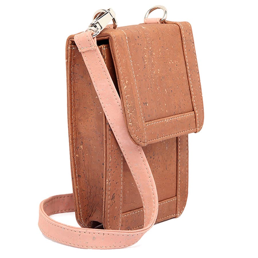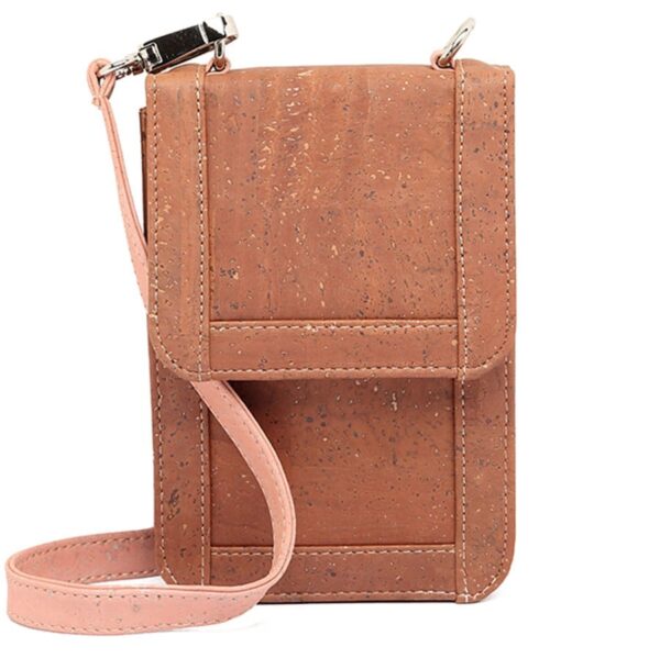 Vegane Damen-Umhängetasche aus Kork «Salmon» von Artelusa mit rotem Innenleben.