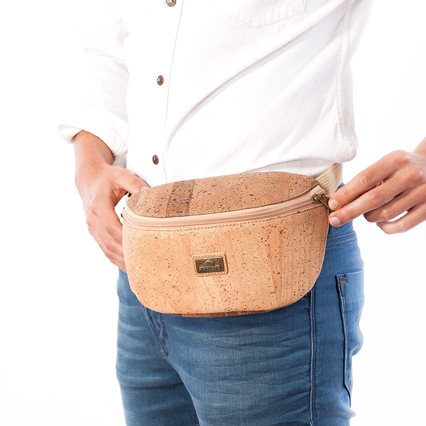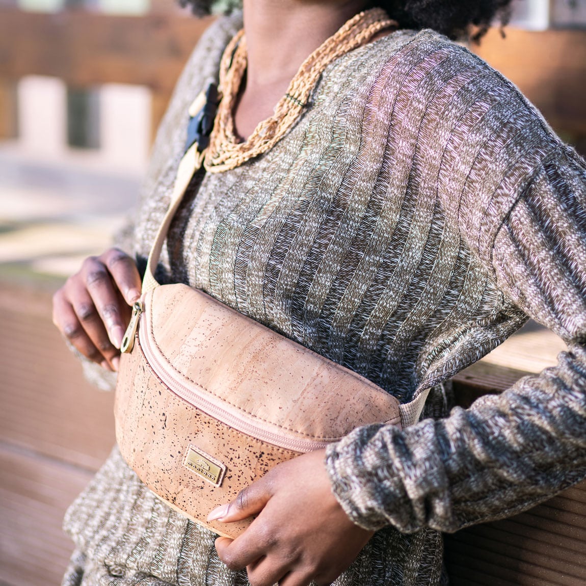 Vegane Gürteltasche aus Korkstoff «Taco» in natürlichen Brauntönen. Hochwertig verarbeitetes, wasserabweisendes Korkprodukt aus Portugal.