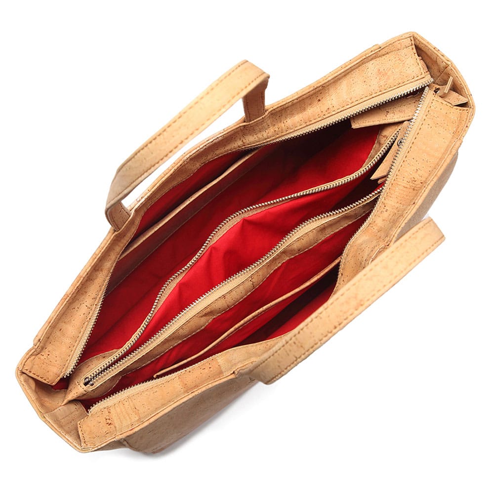 Vegane Handtasche aus Kork «Pure» aus natürlichem Kork mit rotem Innenteil. Ein edles Stück Natur!