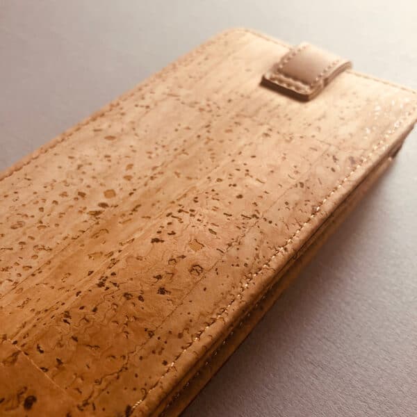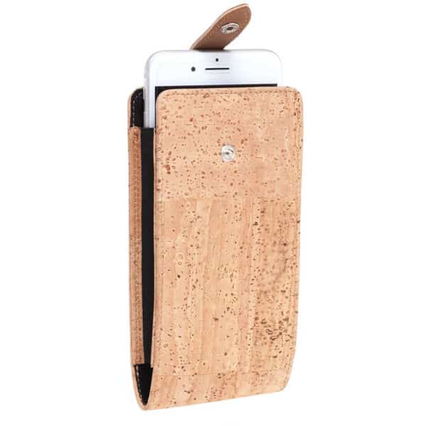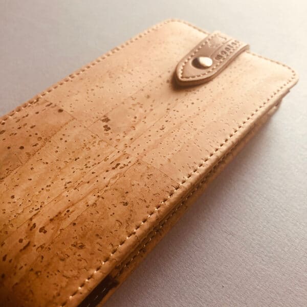 Vegane Handyhülle «X Large» aus Kork von Montado. Handytasche aus veganem Kork. Mit Metallfederverschluss sowie seitliche Elastik, um das Mobiltelefon zu stützen. 100% vegan, ohne tierische Materialien.