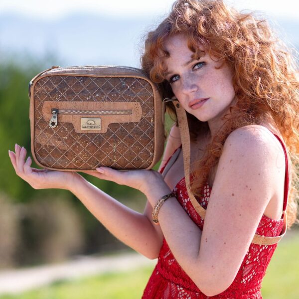 Der Kork, den wir zur Herstellung unserer Taschen und anderer Produkte verwenden, wird alle neun Jahre aus Korkeichen gewonnen, ohne die Gesundheit des Baumes zu schädigen. Tatsächlich profitiert der Baum von diesem Prozess. Jede Korkeiche hat eine Geschichte, alle Korkplatten weisen Variationen in Muster, Farbe sowie Textur auf. Jeder Modeartikel aus Kork hat auch eine Geschichte. Sie sind alle unterschiedlich. Kork ist ein hochwertiges Material. Mehrere haben versucht, ihn durch industrielle sowie technologische Verfahren nachzubilden. Alle sind erbärmlich gescheitert.